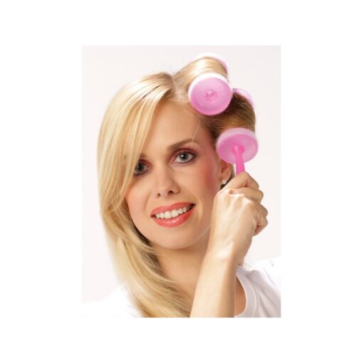 BRUSH and CURL-Haftwickler-Set • erhöhte Seitenränder für perfekten Halt der einzelnen Haarsträhnen • Haftwickler und Rundbürste in einem • Ø 40 mm • pink • 6 Stk mit „Klick“- Griff / Tasche.