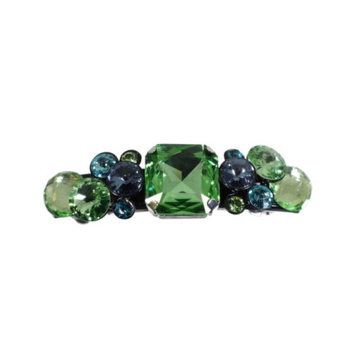 Verleihe deiner Frisur einen Hauch von Eleganz und Stil mit unserer Haarspange aus der Premium Collection. Die verschiedenen Grüntöne in Kombination mit den hochwertigen Schmucksteinen machen sie zu einem faszinierenden Accessoire. Das Markenzeichen „Made in France“ bürgt für höchste Qualität und erstklassige Verarbeitung. Der schwarze Gummischlauch bietet Komfort und schützt dein Haar. Mit dieser Haarspange setzt du ein modisches Statement und verleihst deiner Frisur den perfekten Touch.