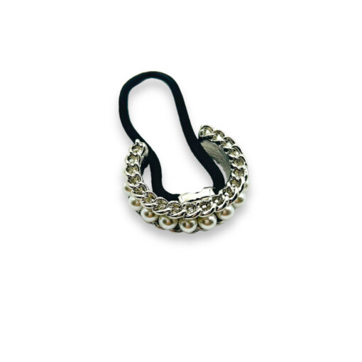 Mit einem Hauch von Luxus und Eleganz verleiht dieses Haargummi deinem Pferdeschwanz eine ganz neue Dimension. Die schimmernden weißen Perlen, umhüllt von strahlendem Silber, schaffen einen faszinierenden Kontrast, der dein Haar in einen Blickfang verwandelt.