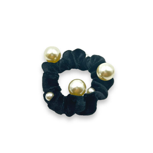 Du verdienst es, in jedem Moment strahlen zu können. Hol dir jetzt unser Schwarzes Samt Scrunchie mit schimmernden Perlen und setze auf zeitlose Eleganz und Klasse.