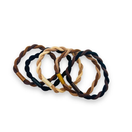 Sei bereit, deinem Style eine Extraportion Charme zu verleihen! Bestelle noch heute unser Set aus 5 gekordelten Haargummis in den klassischen Farben Beige, Braun und Schwarz und genieße den perfekten Mix aus Eleganz und Tragekomfort. 🌟💖