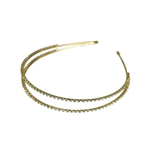 Haarreifen aus Metall silber doppelreihig, bestückt mit Strasssteinen in cristall