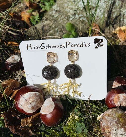 Unsere Kreation vereint die warmen, herbstlichen Brauntöne mit der zeitlosen Eleganz des Goldes. Dieser Ohrschmuck ist nicht nur ein Blickfang, sondern ein Statement für anspruchsvollen Geschmack und die Liebe zum Besonderen.